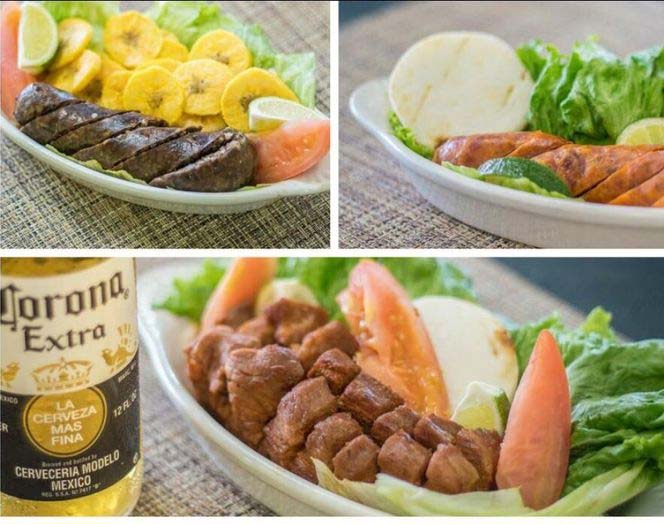 Grilled steak,white rice and beans,eggs any style corn cake or toast,cheese and coffee or chcolate(if can be order with chicken,liver or pork rinds)